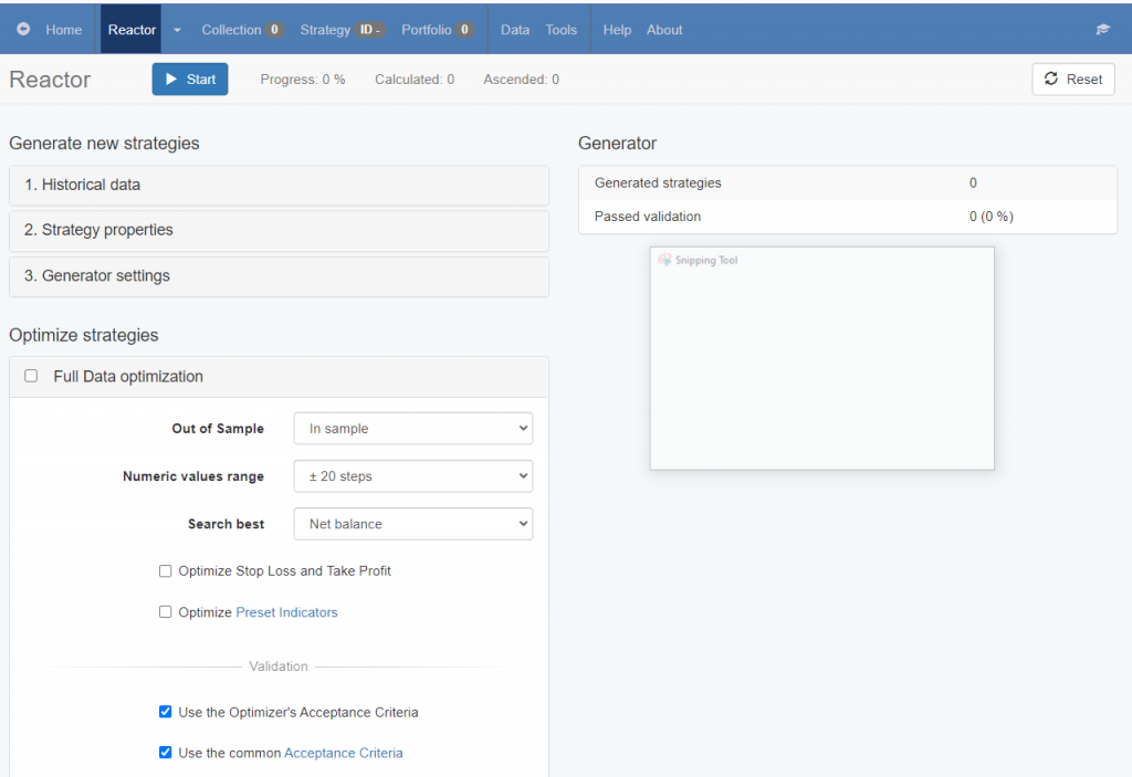 If you use the Reactor with Optimization on, it first creates new strategies with the corresponding Preset Indicators, but it is possible for the Optimizer to change their numeric parameters. This happens when the “Optimize Preset Indicators” option is enabled.